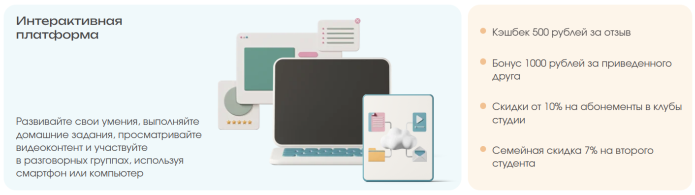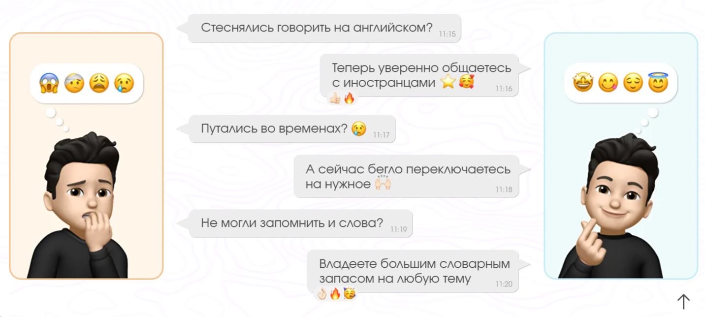 делает занятия в разы интереснее, эффективнее и полностью переворачивает представление о том, что учить язык скучно. В первое время было